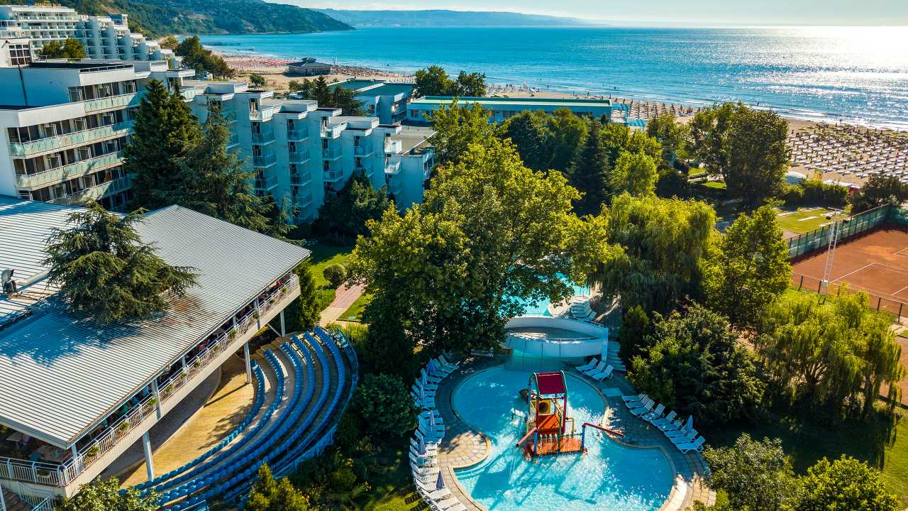 ![]() Aerial view of the famous resort Albena (near Varna) on the Bulgarian Black Sea coast